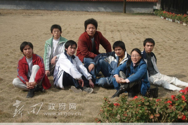 图片2:曹雄英老师与部分学生在学校草坪上谈心